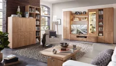 Die hochwertige Verarbeitung - made in Germany - mit den handwerklich anmutenden, abgerundeten Fronten und die exklusive Optik schaffen eine wahre Wühlfühlatmosphäre für Ihr Zuhause. PLANO 2 setzt moderne Akzente in den 2 naturnahen Eiche-Dekoren.