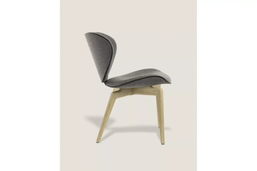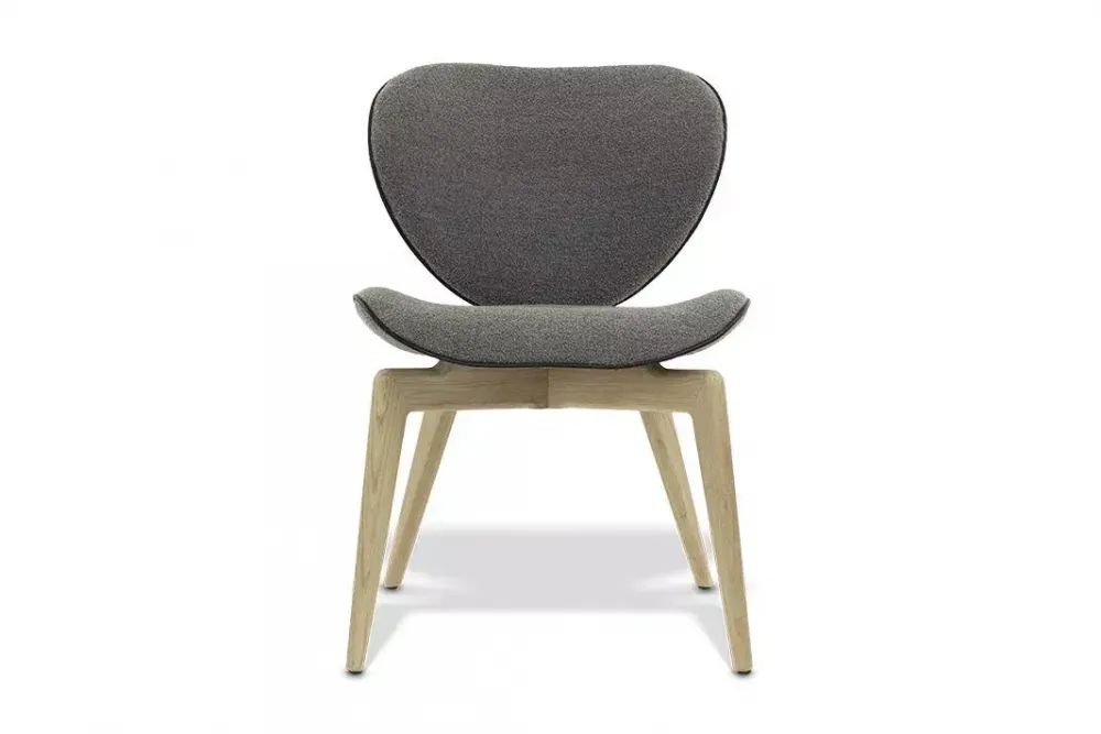 Ein Polsterstuhl einer starten Ausstrahlung. Dieser Stuhl zeichnet sich durch sein kompaktes Design mit einer natürlichen und eleganten Form aus. Der Designersessel besteht aus zwei Schalen der Rückenlehne und des Sitzes, die mit flexibler Metallplatte verbinden sind und für Komfort und Unterstützung des Körpers sorgen.